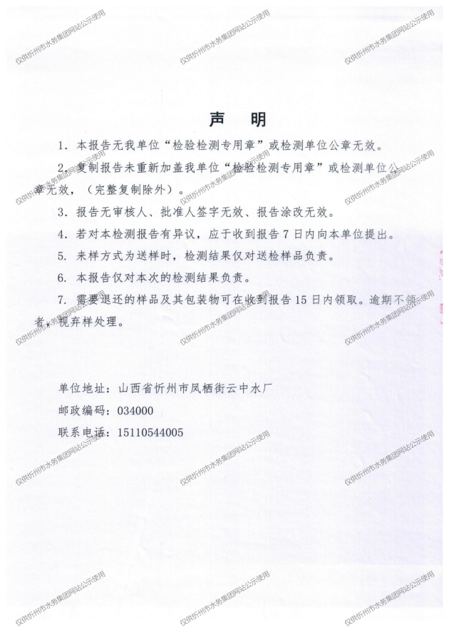 忻州城區(qū)公共供水水源水、出廠水、管網水、管網末梢水2025年7月份水質信息公示