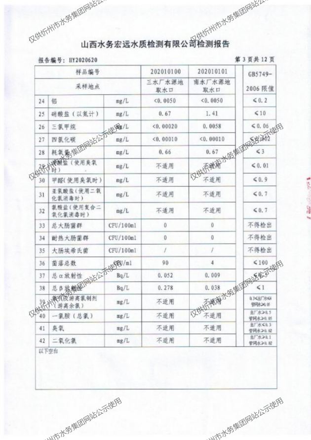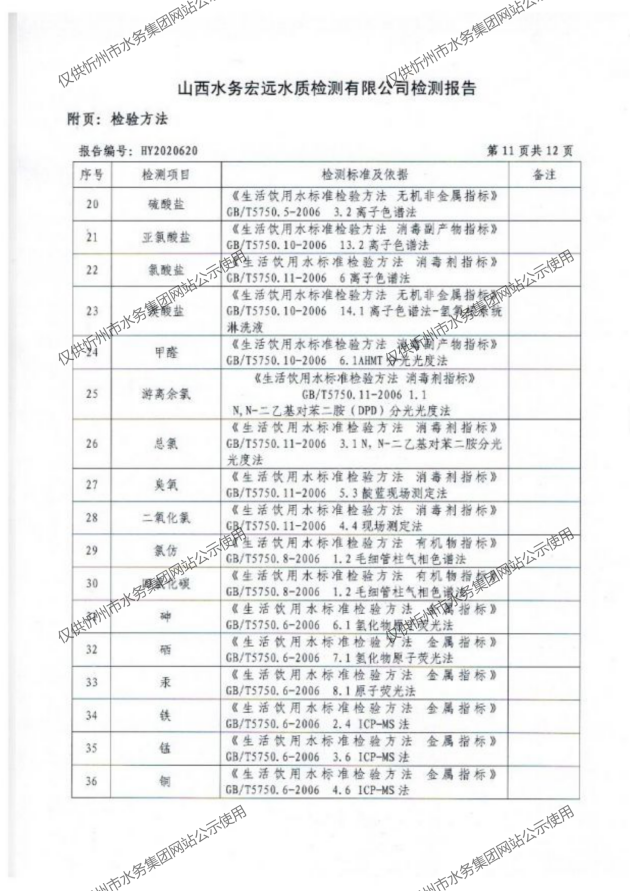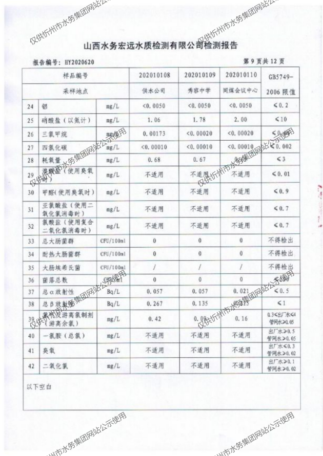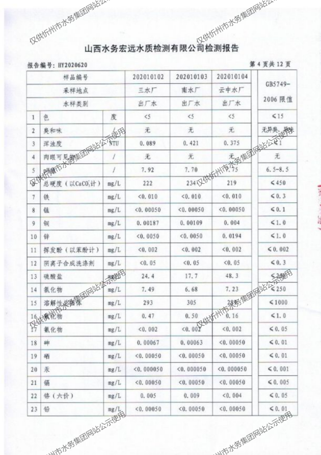 忻州城區(qū)公共供水水源水、出廠(chǎng)水、管網(wǎng)水、管網(wǎng)末梢水2020年10月份水質(zhì)信息公示