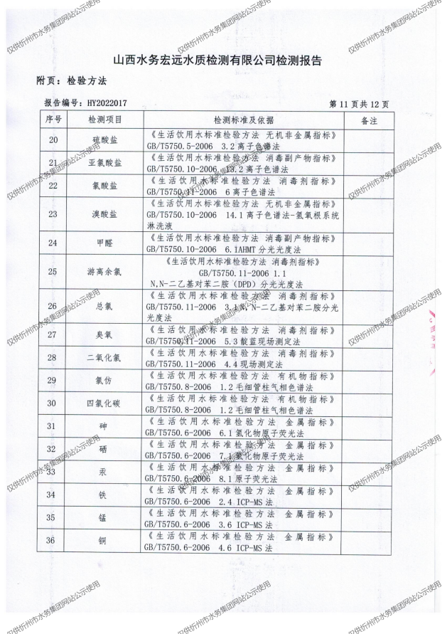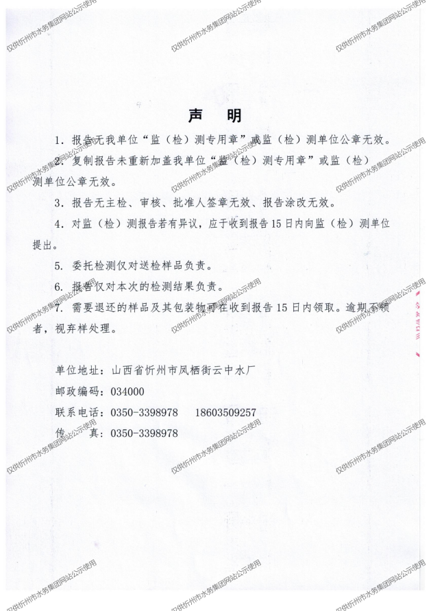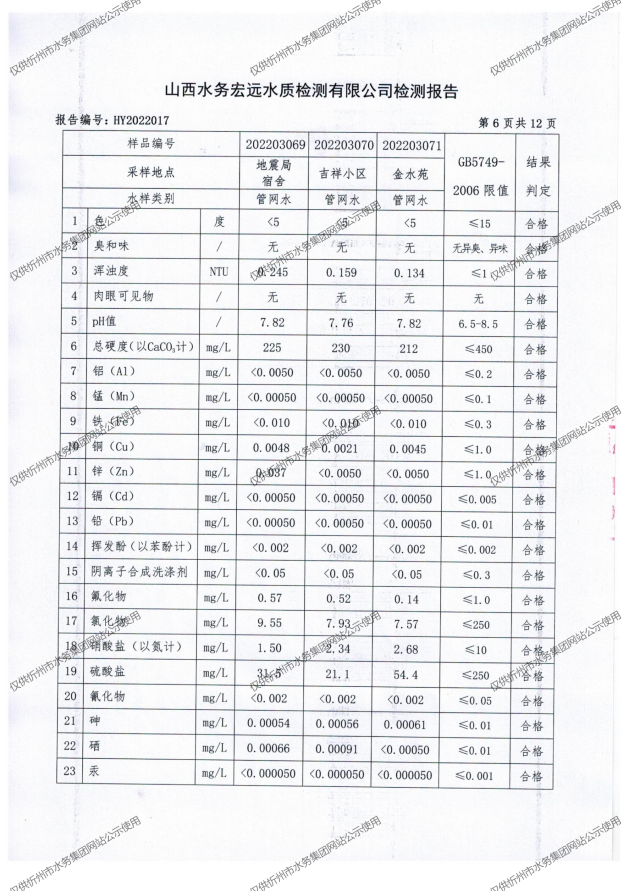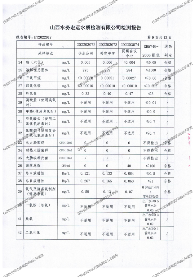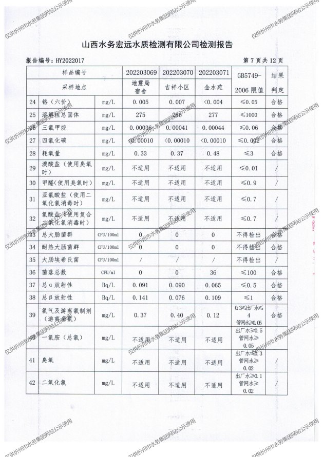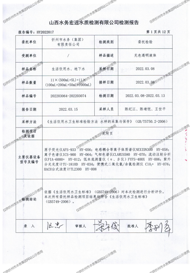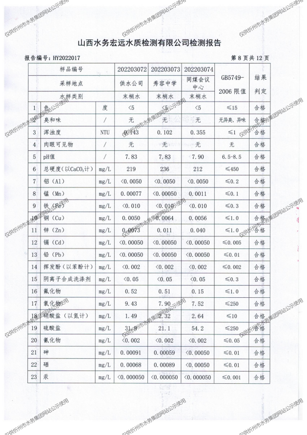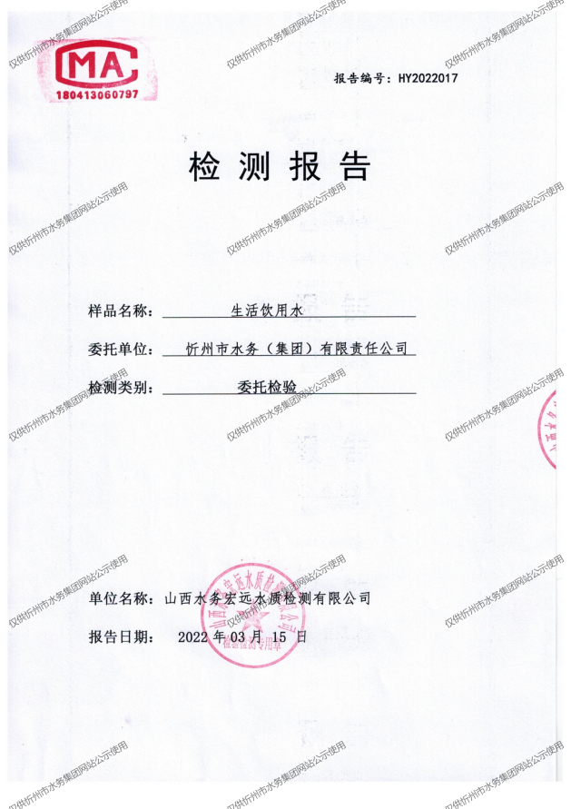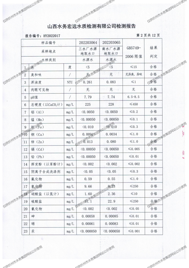 忻州城區(qū)公共供水水源水、出廠(chǎng)水、管網(wǎng)水、管網(wǎng)末梢水2022年3月份水質(zhì)信息公示